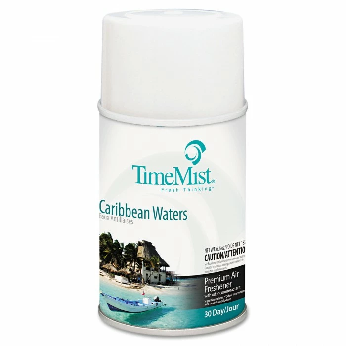 Product Details for TimeMist Premium Metered Air Freshener Refill, Caribbean Waters, 6.6 oz. Aerosol 12/Carton