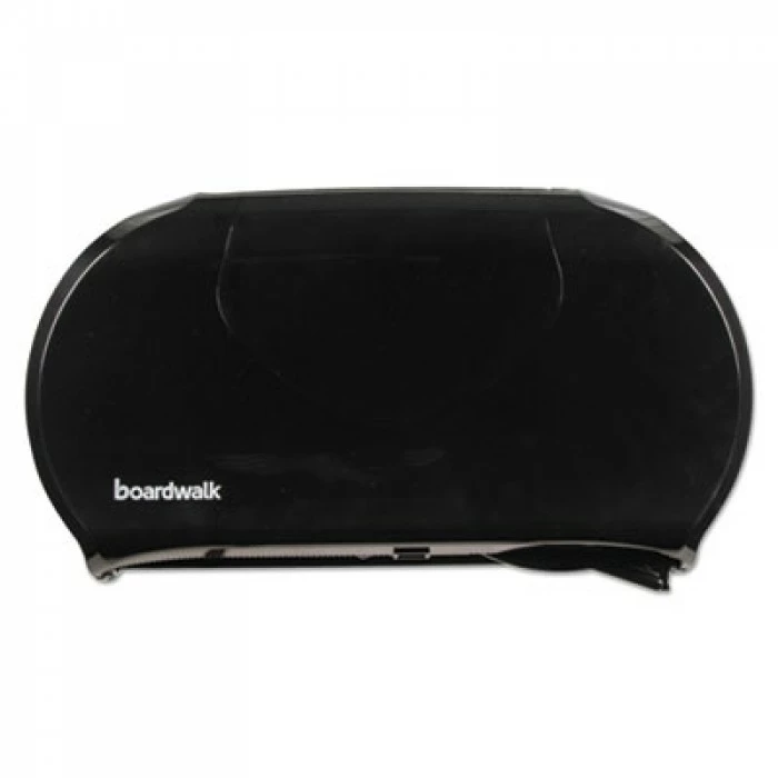 Jumbo Twin Toilet Tissue Dispenser, 20 1/4 x 12 1/4, Black. Sturdy toilet tissue dispenser houses universal jumbo rolls. Auto transfer and double coverage eliminates run-outs, providing access to replacement roll after initial roll depletes. Prevents waste and saves labor by ensuring one roll is used up before transferring to the second.