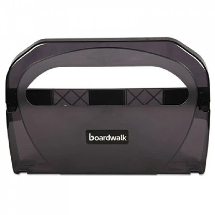 Toilet Seat Cover Dispenser, Plastic, 17 1/4 x 3 1/8 x 11 3/4, Smoke Black. Select a sturdy wall-mountable toilet seat cover dispenser to provide customers with a more sanitary restroom. Access to toilet seat covers prevents waste, eliminating the need to create makeshift covers from paper towels or toilet tissue. Toilet seat cover dispensers provide an economical restroom solution for demanding consumers.