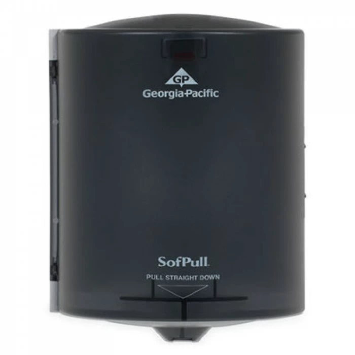 Center Pull Hand Towel Dispenser, 9 1/4w x 8 3/4d x 11 1/2h, Smoke. Sofpull® Centerpull paper towels are soft for thorough, gentle hand-drying, yet strong and absorbent for light cleanups. And because these towels are thick and high quality, employees and patrons tend to take fewer, helping to reduce waste. The dispenser’s one-at-a time design helps reduce waste and, because contact with the dispenser is minimized, there is less risk of cross-contamination. Thedispenser is designed to not only dispense one-at-a-time, every time, but also it’s easy to load a fresh roll with one hand, saving on maintenance time. Use these premium paper towel systems in restrooms, break rooms, waiting rooms, food preparation areas and more. GP PRO is a division of Georgia-Pacific Consumer Products. We deliver well-designed, durable and easy-to-maintain professional solutions to meet the hand-washing and cleaning needs for a range of business applications. Regular Capacity-320 sheets per roll. Use with SofPull® Towels GPC-28124 (sold separately). Towels Dispensers Type: Roll Towel Dispenser; Material(s): Plastic; Color(s): Translucent Smoke; Depth: 8 3/4″.