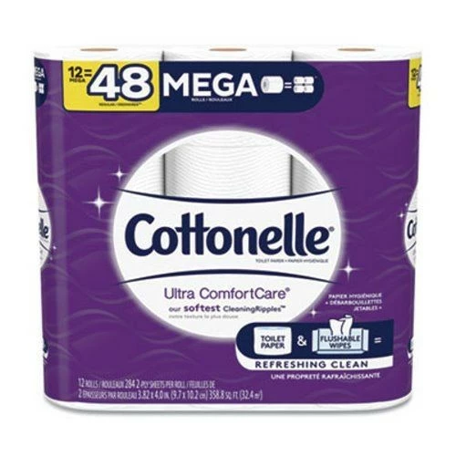 Make sure that your bathroom is fully stocked with the Cottonelle Ultra Cleancare Toilet Paper, Mega Rolls. Uniquely designed with a new wavy CleanRipple® Texture, this product is three times thicker, stronger, and more absorbent than ordinary bathroom tissue and will provide your family with just-like-home optimum comfort.
