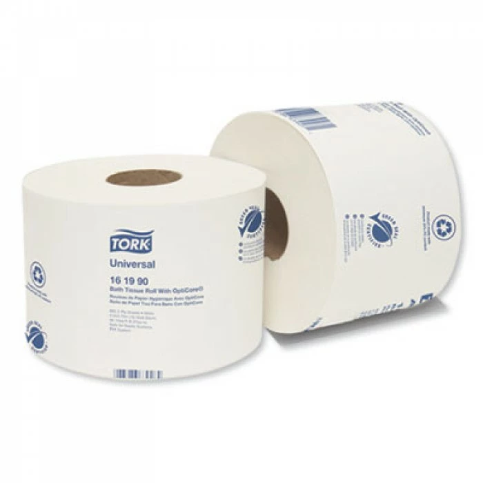 Keep the Universal 2-Ply Bath Tissue Roll with OptiCore on hand to provide guests with a convenient and hygienic way to clean up after bathroom use. Soft and absorbent, this product provides a clean and fresh feel while its 2-ply thickness ensures less usage of toilet paper per bathroom visit.